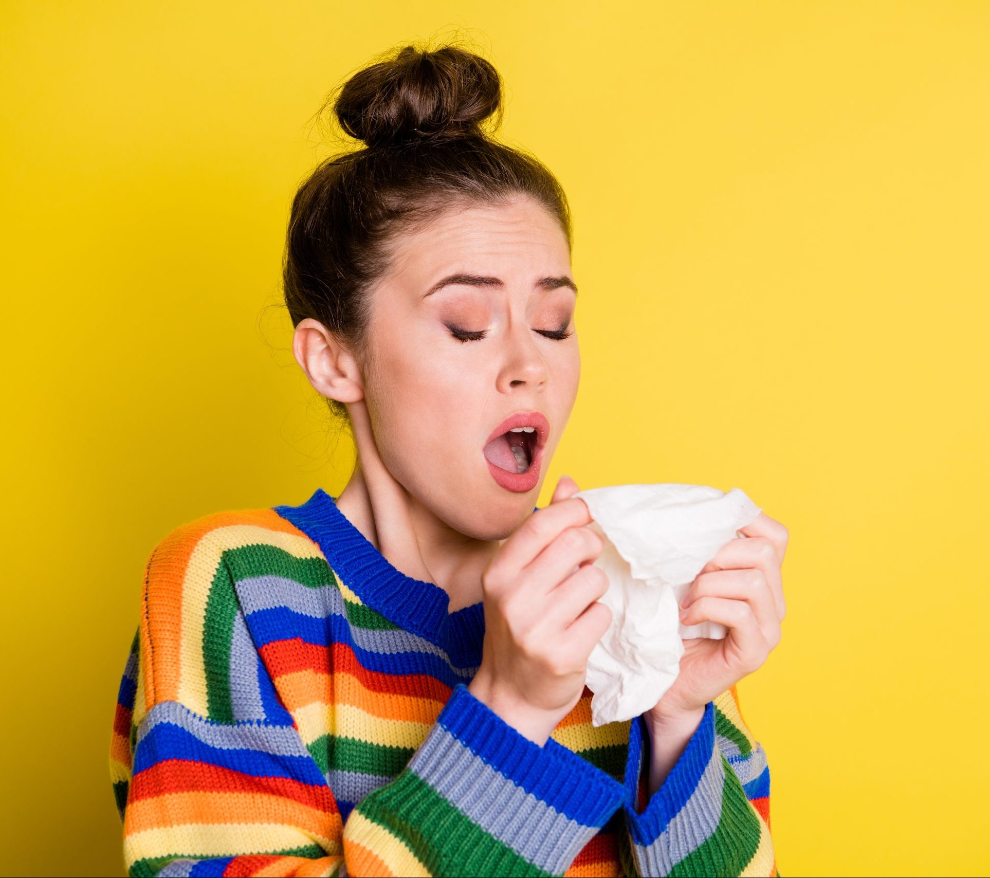 Allergies, on the other hand, are not caused by a virus but rather by immune system responses triggered by exposure to allergens, such as seasonal tree or grass pollens. Sneezing and runny noses are two symptoms of allergies. Itchy skin, a scratchy nose or eyes, and tearing eyes also might potentially be symptoms of an allergy.