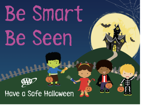 AAA’s statewide efforts are focused on an amped up awareness of traffic safety during Halloween. Excited trick-or-treaters often forget about safety. AAA encourages motorists and parents to be vigilant and even more alert during this time and heed these Be Smart – Be Safe – Be Seen on Halloween safety tips.