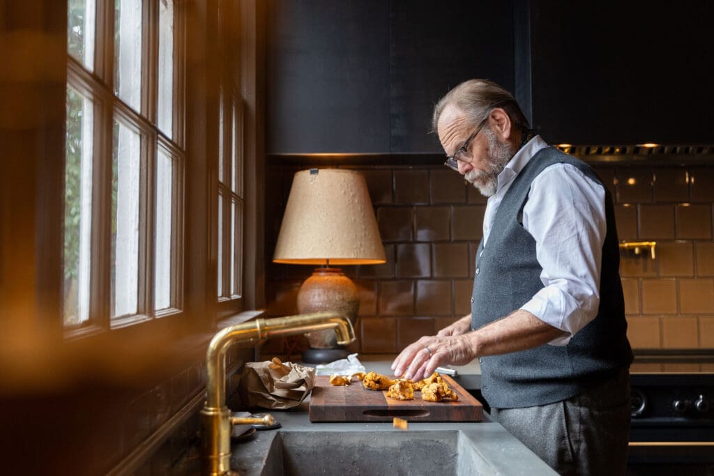 His intown home kitchen by December was fully functional, giving Brown the chance to cook breakfast for the AJC. Besides biscuits, which the ever–perfectionist Brown found a tad overcooked, he offered scrambled eggs with local golden chanterelle mushrooms.