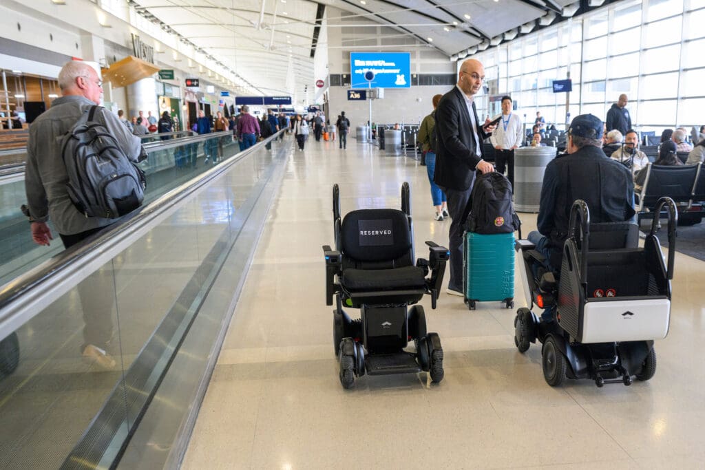 For 90 days, 10 chairs, called WHILL devices, will be available to travelers as part of a partnership with Unifi. The chairs can drop off passengers at specific gates without an employee navigating them and stop if an obstacle is in the way.