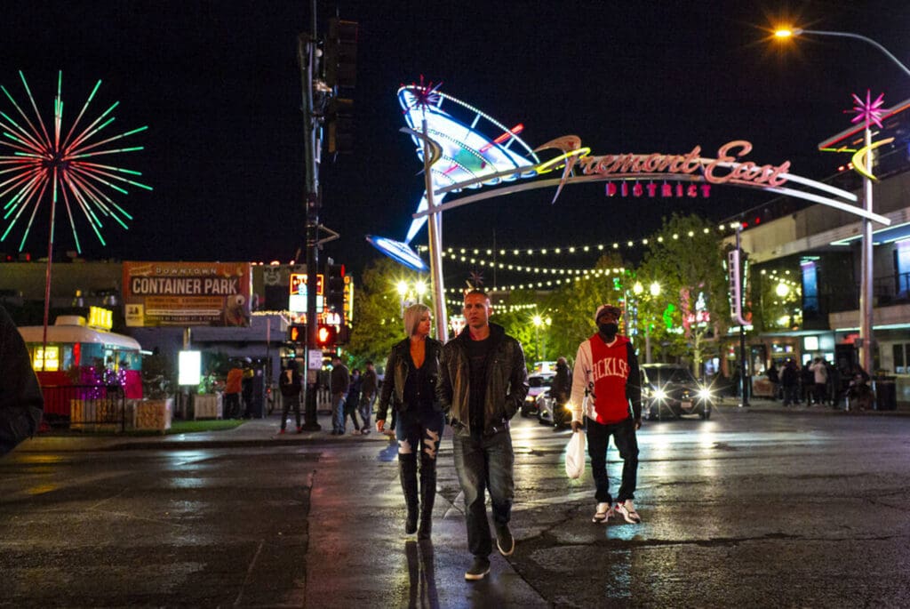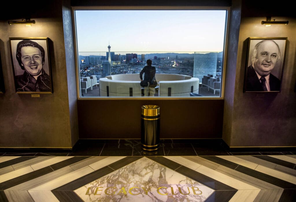 The sun sets on the city viewed from the outside deck within the Legacy Club at Circa on Dec. 22, 2020, in Las Vegas. (L.E. Baskow/Las Vegas Review-Journal/TNS)