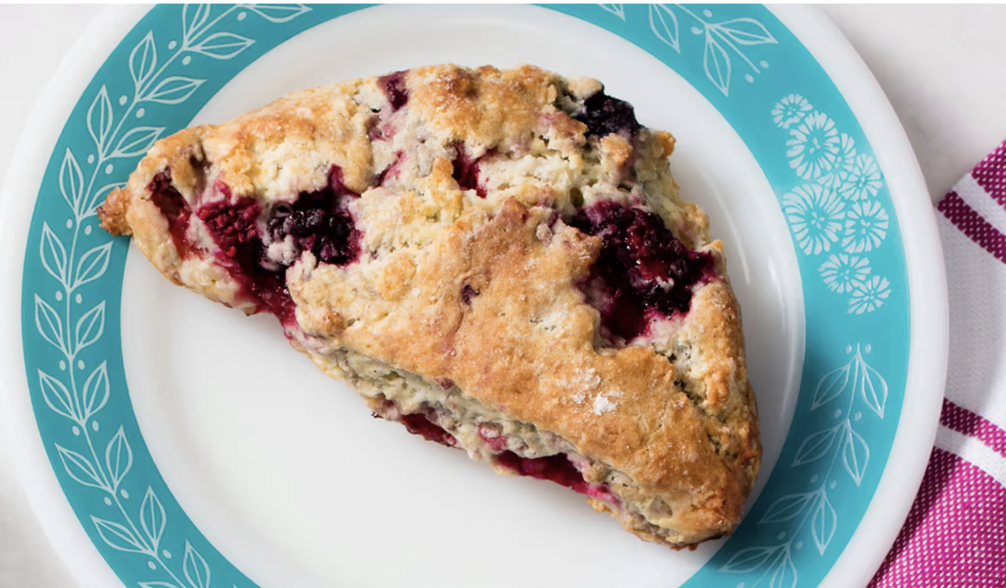 Using frozen berries helps keep the dough’s temperature low. It also prevents the bright berry color from bleeding out of the berries and into the dough.
