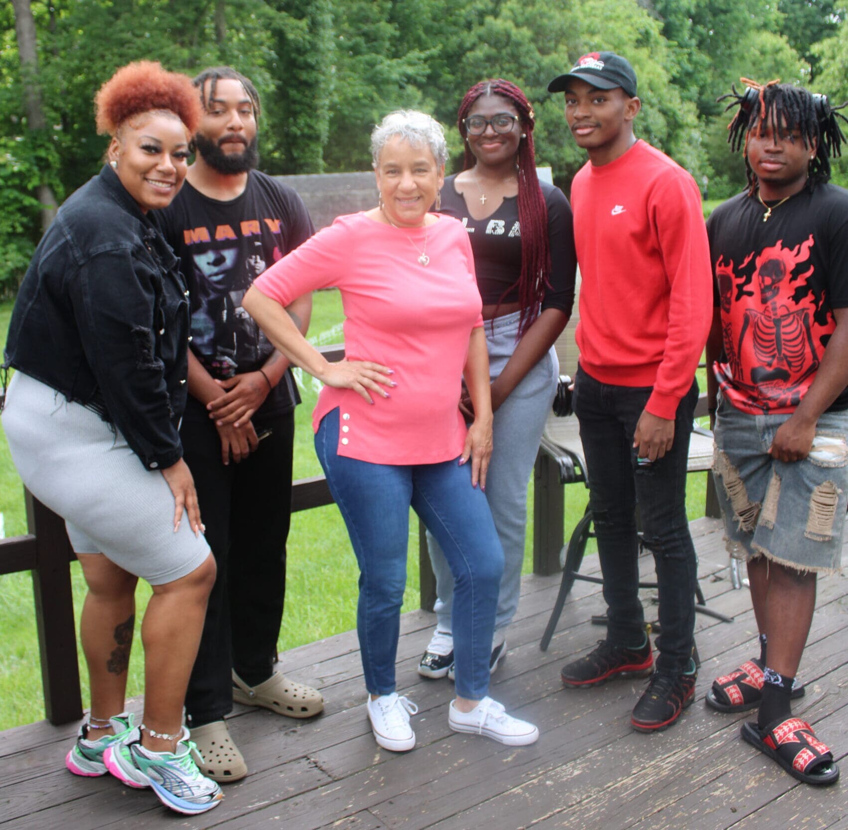 From left to right: Tionna Reed, Jalen Grants, Donna Reed, Alana Scott, Zion Newton, and Joshua Sutherland enjoying themselves at an impromptu backyard get-together.
