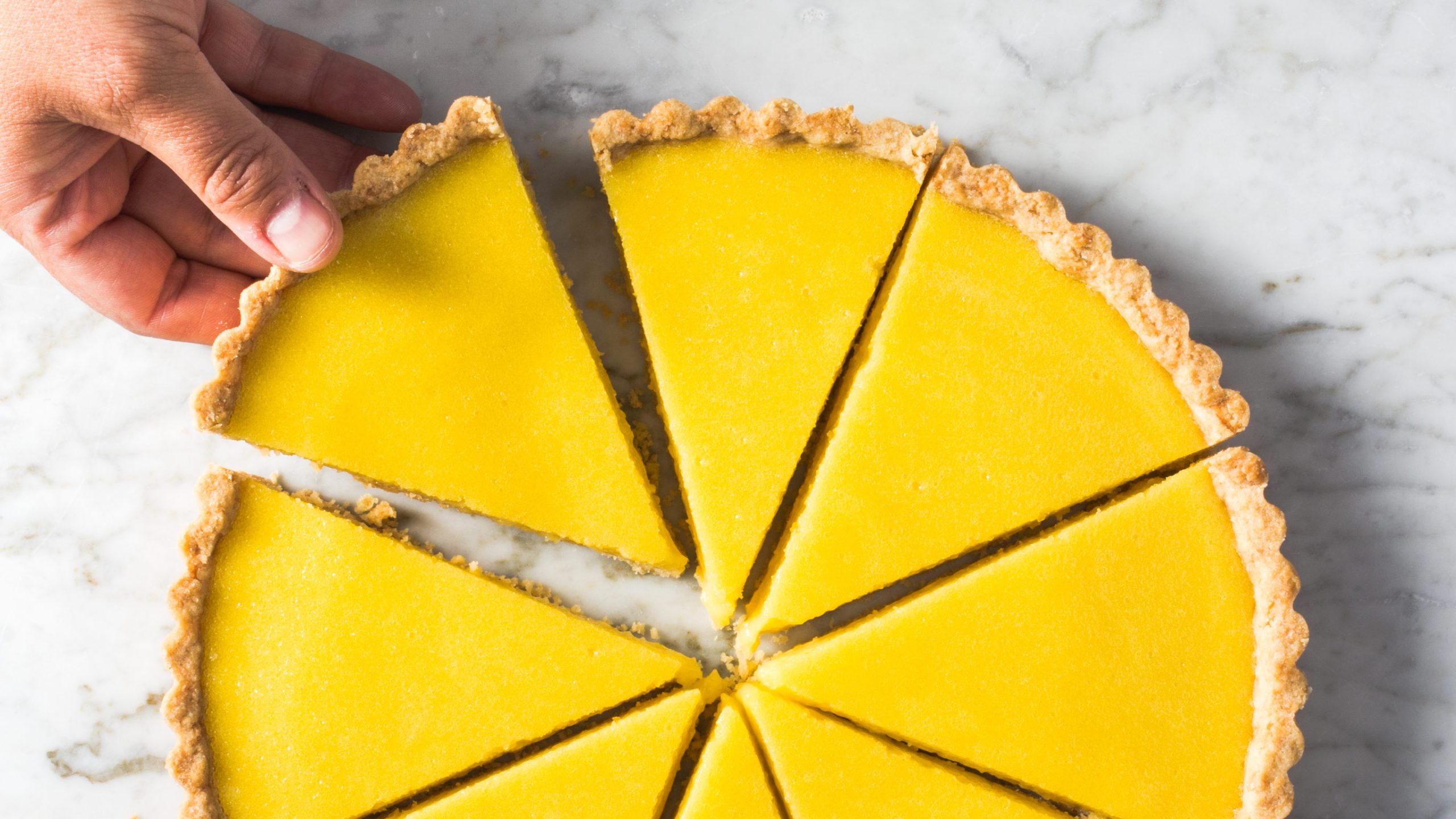 Using olive oil in the filling as well allows the lemons’ acidity to shine through, allowing you to use a bit less juice than you’d need to enjoy the bright flavor if you had used butter instead. You also won’t lose any of the firmness or sliceability you’d expect in a tart, because the filling gets plenty of structure from the protein in the eggs.