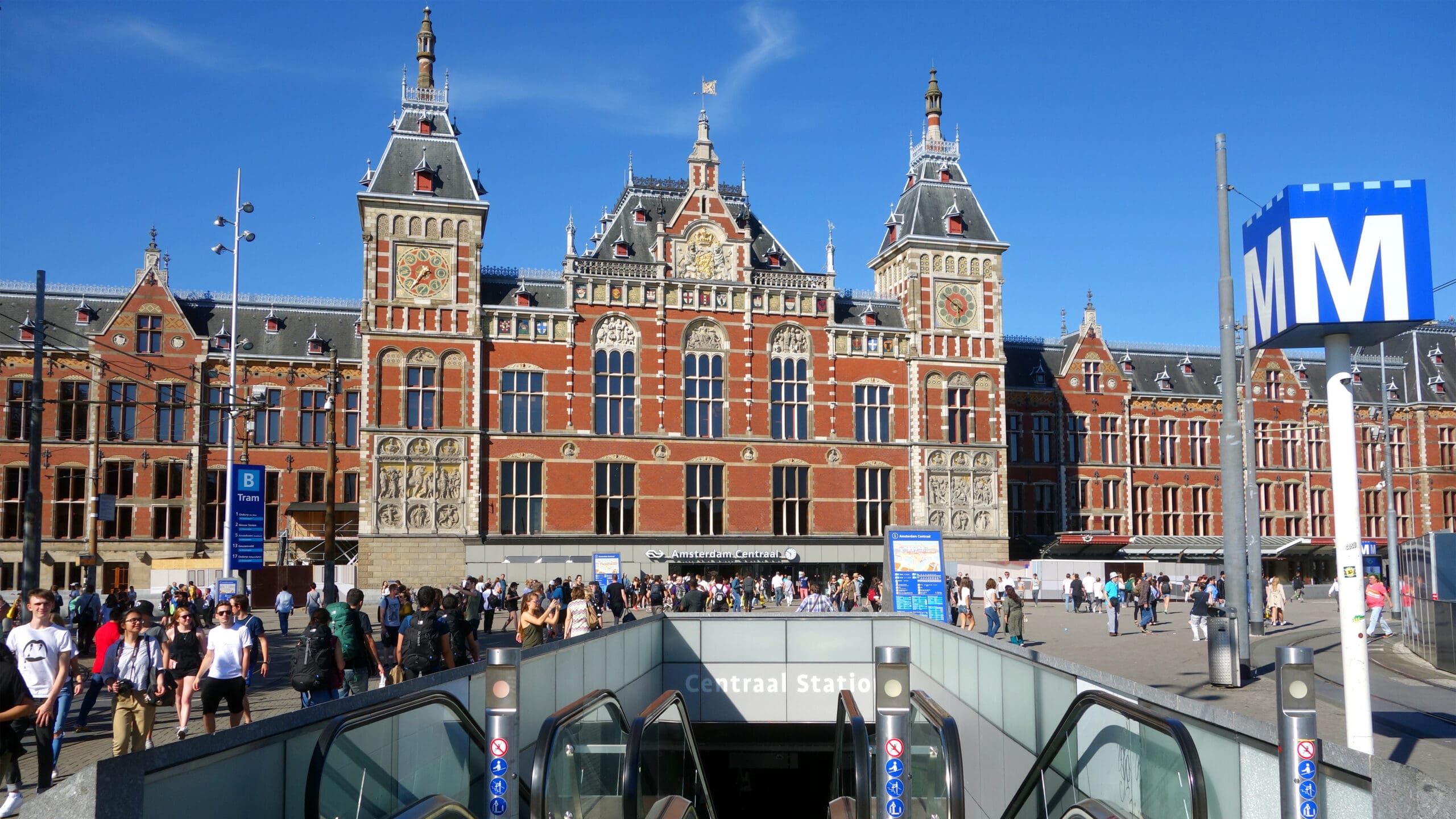 One side of the station faces the harbor. From there, buses come and go, the free shuttle ferries are jammed with bikers, and the Amsterdam-Noord district across the water bustles with construction as if fertilized by the new commuter train line that tunnels under the water to connect it with downtown. And on the city-facing side of the station, trams glide, children pedal to school as if in a small town, and pairs of police add no stress to the laid-back scene.