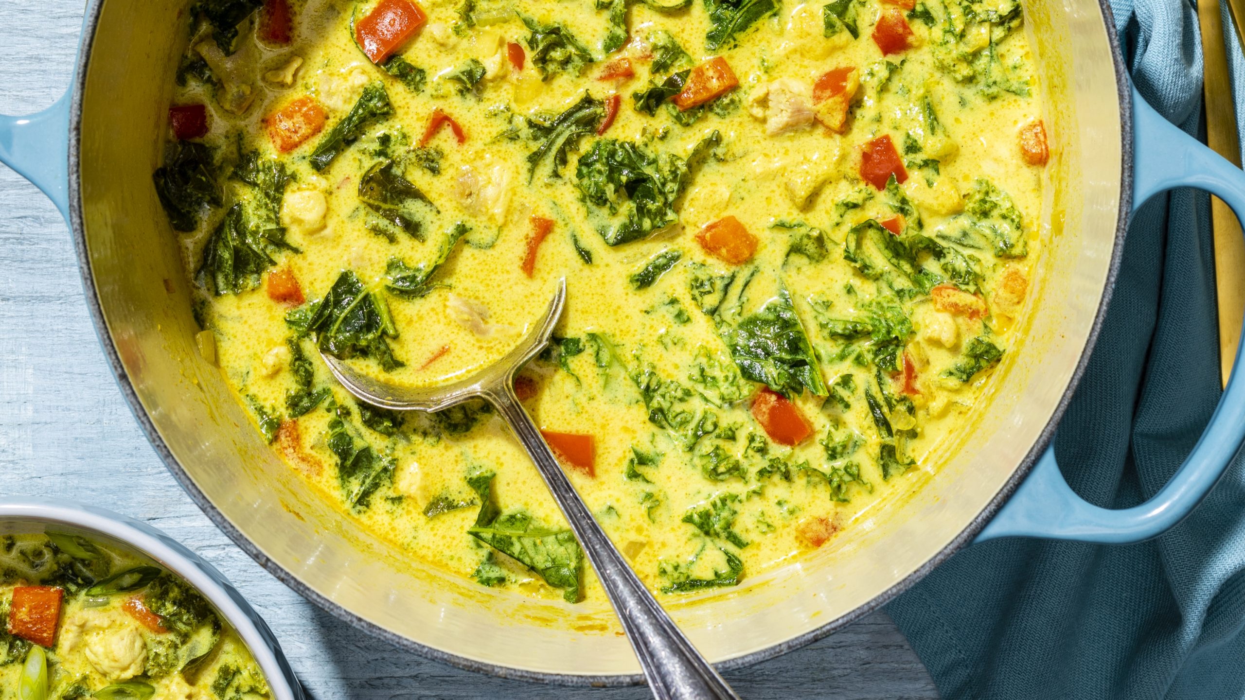 Coconut milk kept our broth creamy and comforting, while ginger and curry powder added spicy heat to keep it lively.