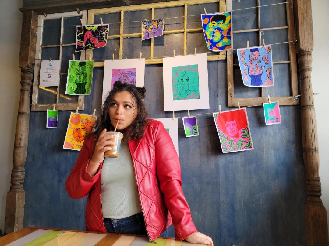 Photo of Melina Brann an artist who took a chance and found success. Get some coffee and check out Brann’s…