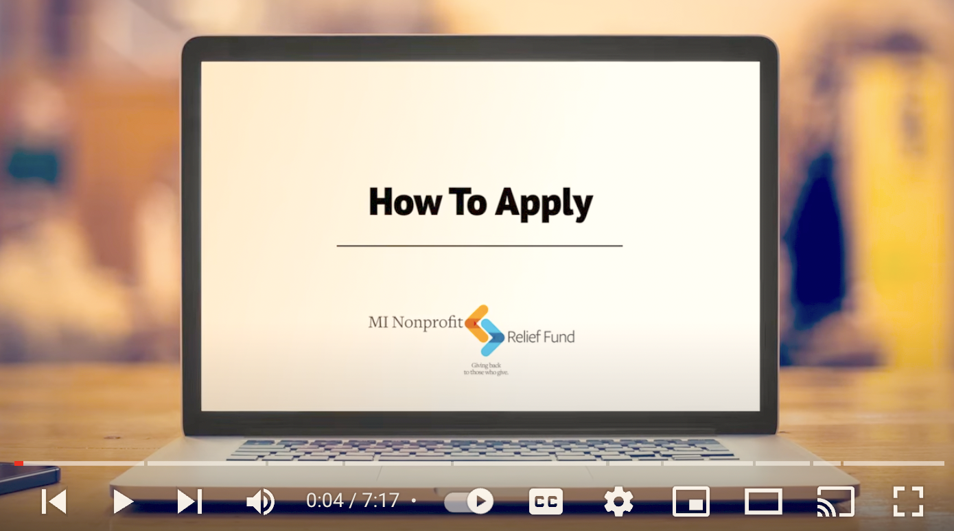 Michigan’s small nonprofits can now formally apply for the $35M relief fund. The intent to apply was simply a tool to gauge need and interest statewide.
